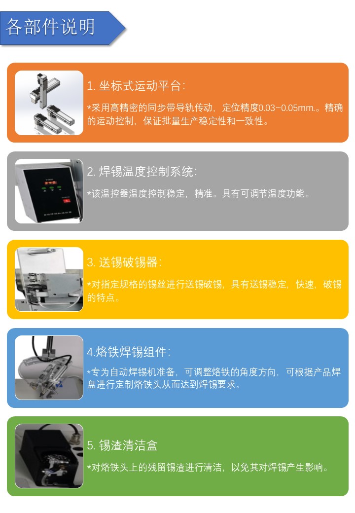 Nó có thể đảm bảo tính đồng nhất của sản phẩm hàn và cải thiện chất lượng hàn; Việc cung cấp thiếc chính xác và có thể kiểm soát linh hoạt, tốc độ cung cấp thiếc, thời gian và lượng thiếc trả lại có thể được điều chỉnh và ổn định để đạt được hiệu quả lý tưởng. So với hàn thủ công, tốc độ hàn, lượng thiếc cấp vào, thời gian hàn, v.v. bị ảnh hưởng rất nhiều bởi yếu tố con người và chất lượng hàn phụ thuộc vào kinh nghiệm vận hành của người công nhân.